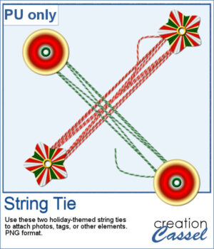 For a sampler, I created two holiday-themed string ties, using gradients for the buttons. You can rotate them a little, but be careful so that the included shadows would still be suitable.