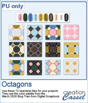 For a free sample, I used the 10-color palette from the March 2026 Blog Train from Digital Scrapbook and generated 12 different seamless tiles. You can use any of them along with that palette to expand your stash.