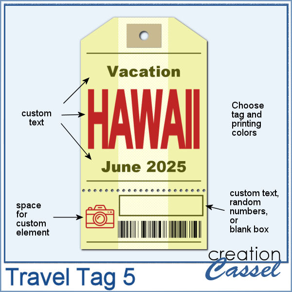 Create travel labels, vacation tags, journaling spots, or even decorative elements for greeting cards and scrapbook pages. Every tag you generate will be completely unique!